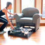 Le fauteuil Stow Fitness intègre un banc de musculation dans sa base.