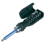Tournevis universel avec un set d'embouts intégrés dans le manche.
